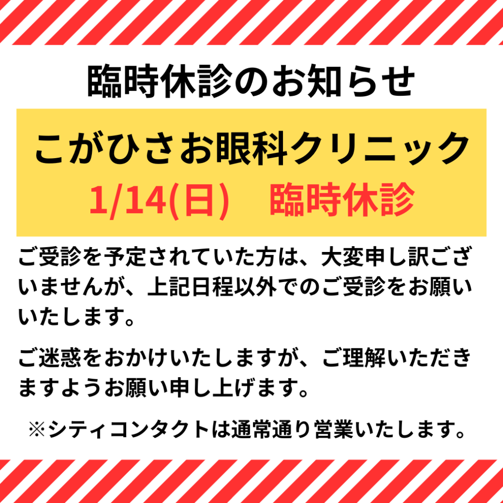 1/14(日)は提携眼科「こがひさお眼科クリニック」様が