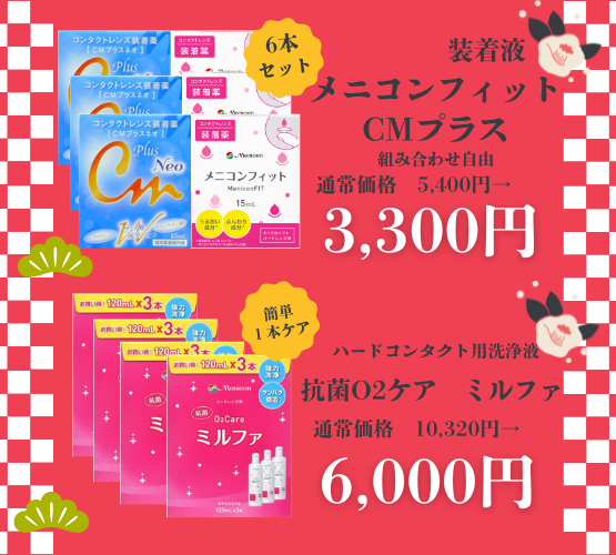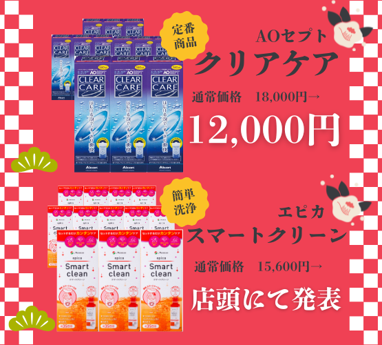 ぜひ一年で一番お得なこの機会にコンタクトレンズ洗浄液・装着液をお買い求めください💕