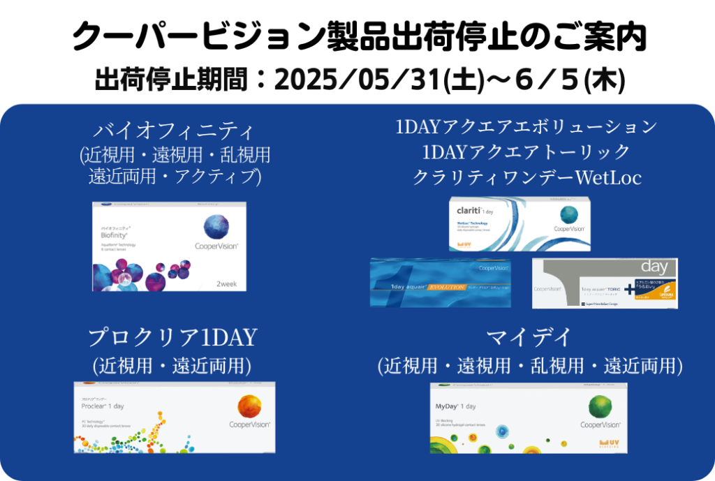 ※クーパービジョン製品一時出荷停止のご案内