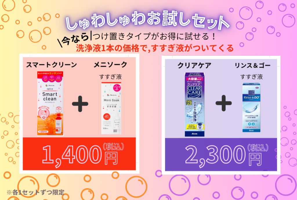 こんにちは🌈コンタクトレンズの洗浄液にお得なセットがでました😉