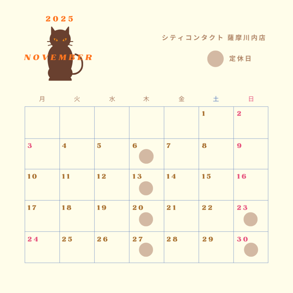 さて、11月の営業日程のご案内です。下記営業カレンダーをご覧くださいませ。