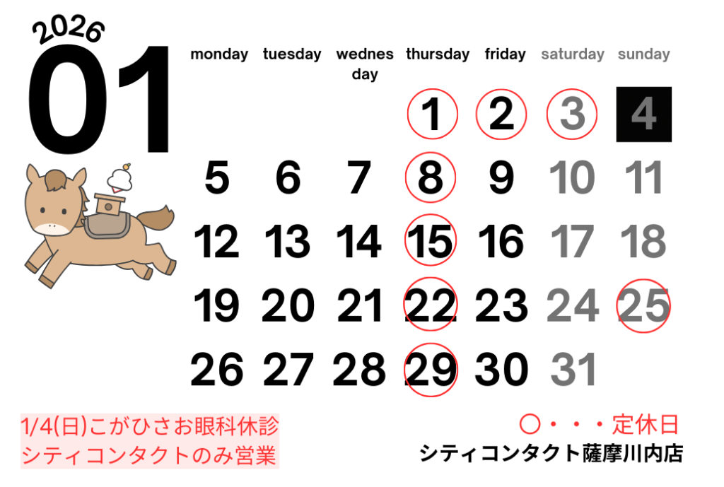 ※シティコンタクトは1/4(日)より営業いたします。併設眼科様は1/4まで休診になります。