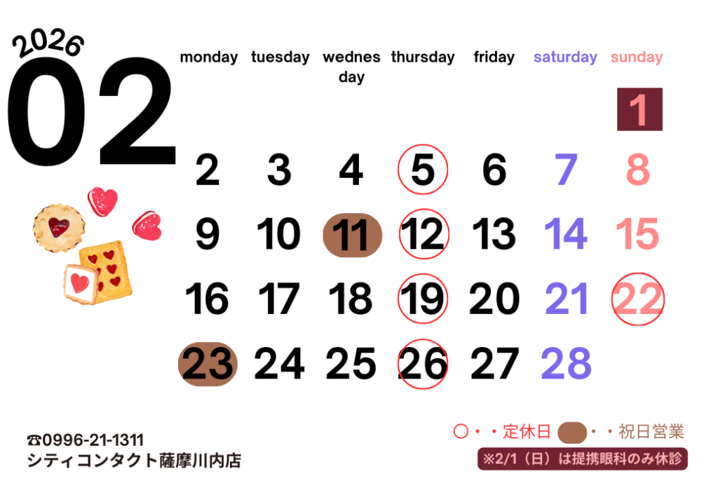 ※2/1(日)は、併設の提携眼科休診となります。シティコンタクトレンズは通常営業しております。