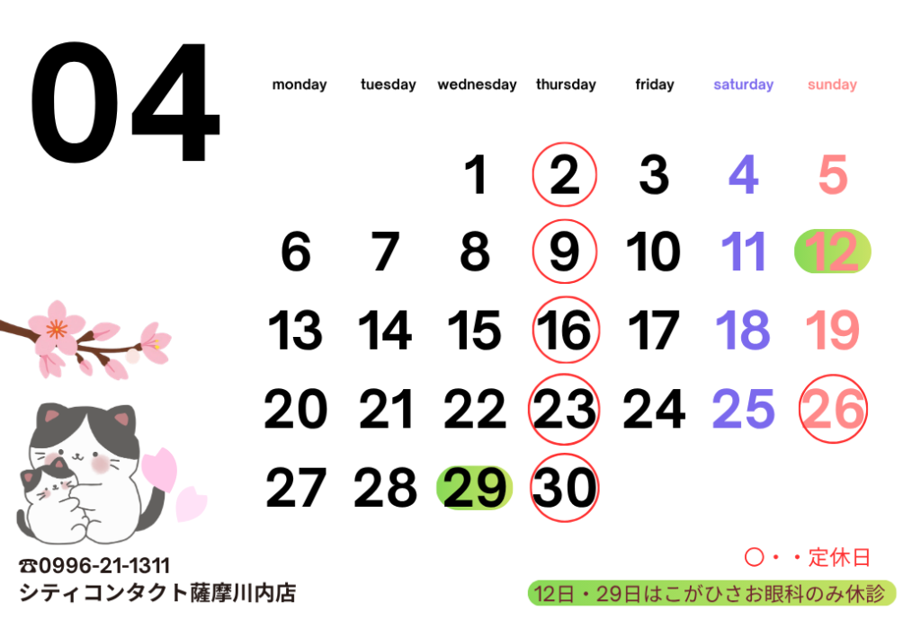 【薩摩川内店】4月営業日程のお知らせ