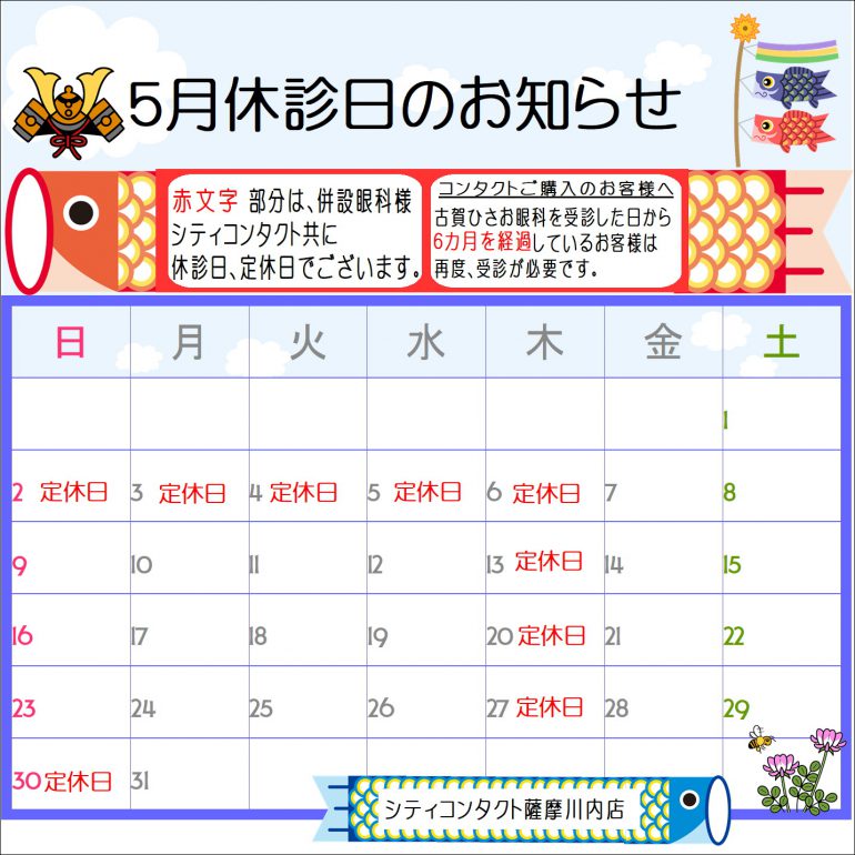 【薩摩川内店】5月スケジュール⭐