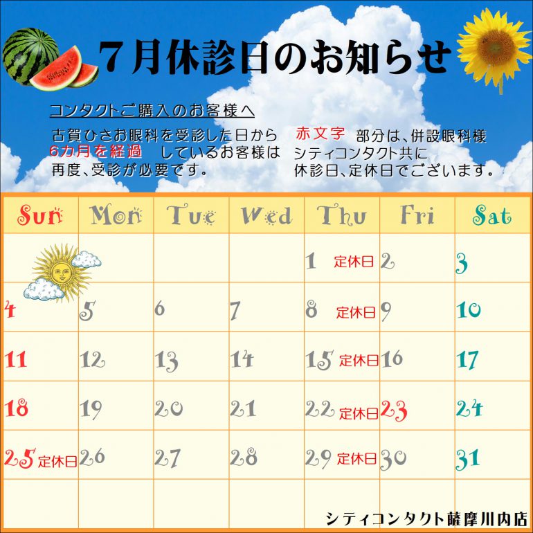 NEWS 【薩摩川内店】7月の休診日とキャンペーンのご案内ฅʕ •ﻌ• ʔฅ♬*゚