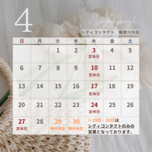 【薩摩川内店】4月営業カレンダー