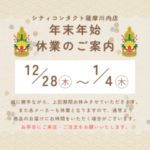 【薩摩川内店】12月の営業日と年末年始のお休みについて