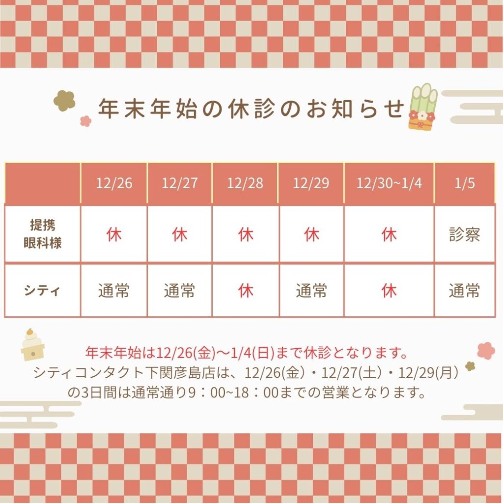 シティコンタクト下関彦島店は12/29(月)が年末最後の営業で、年始は1/5(月)から通常通り営業いたします!!