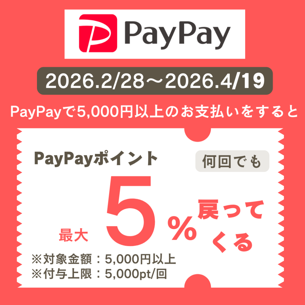 PayPayポイントが最大5%何回でも戻ってくるキャンペーンを実施中です!